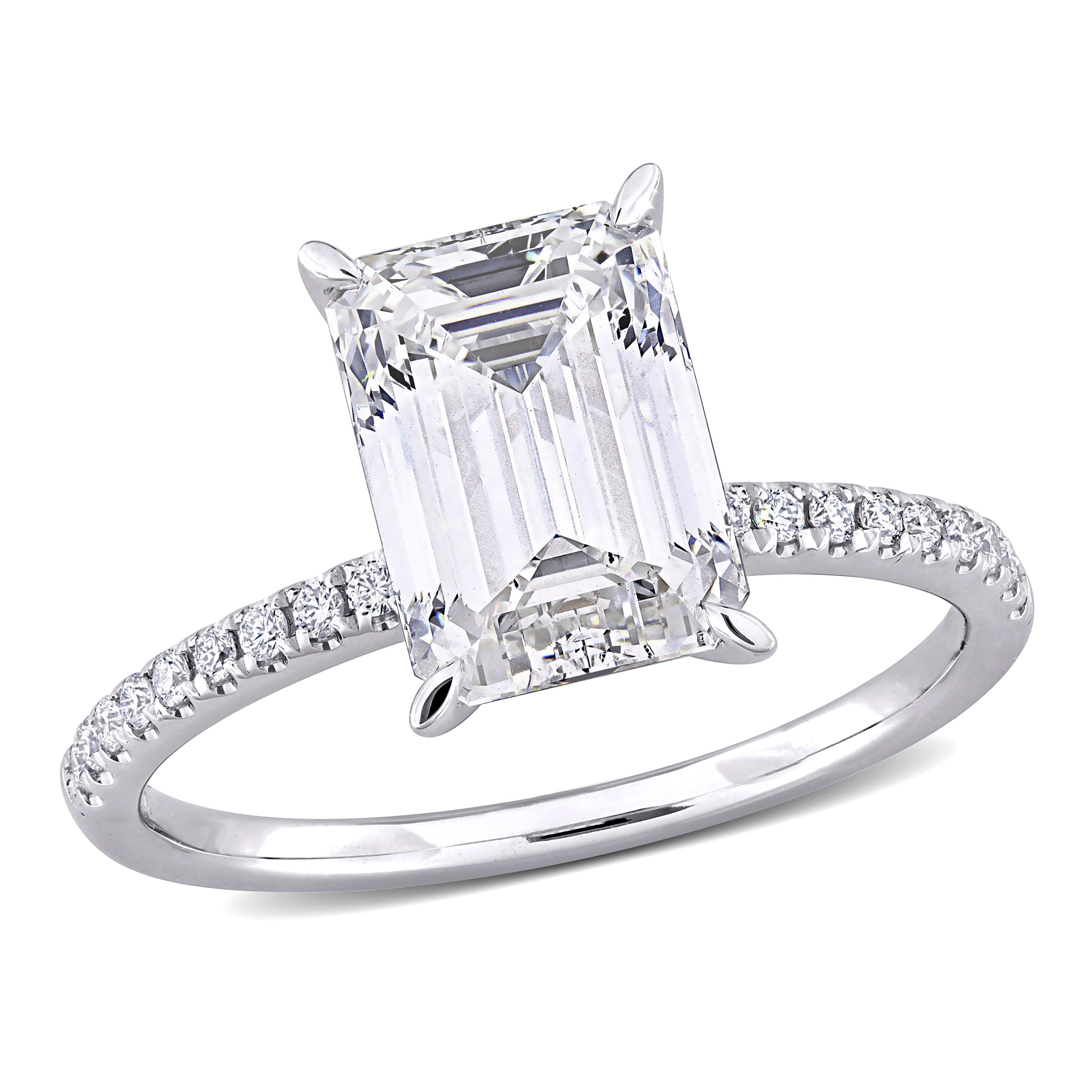 3 1/10ct TW Lab-Grown Diamond Emerald Solitaire Engagement Ring in 14k White Gold