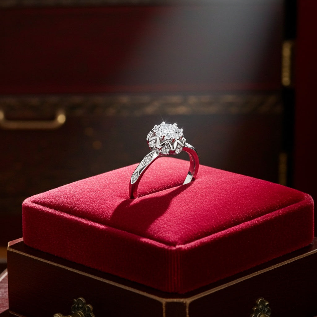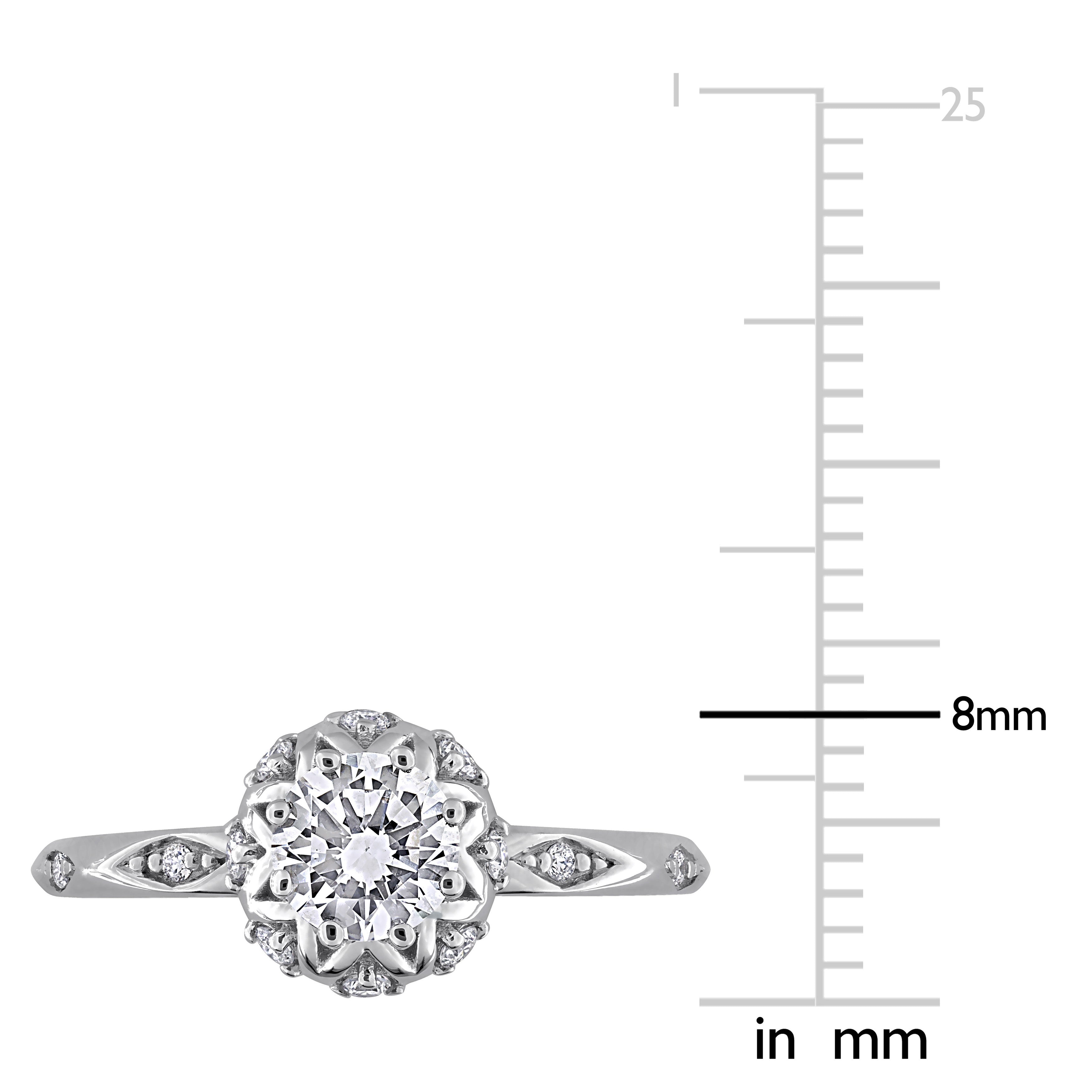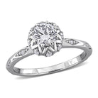 Beautifully accessorize your wardrobe with this pleasant looking vintage floral ring. Featuring round-cut lab-grown diamonds crafted in 18k white gold. This wonderful ring is enhanced with a high polish finish.
