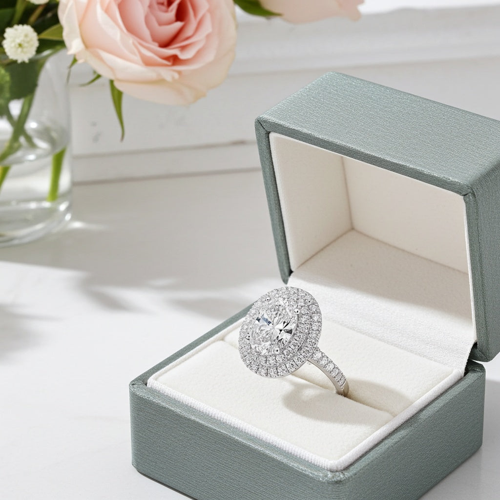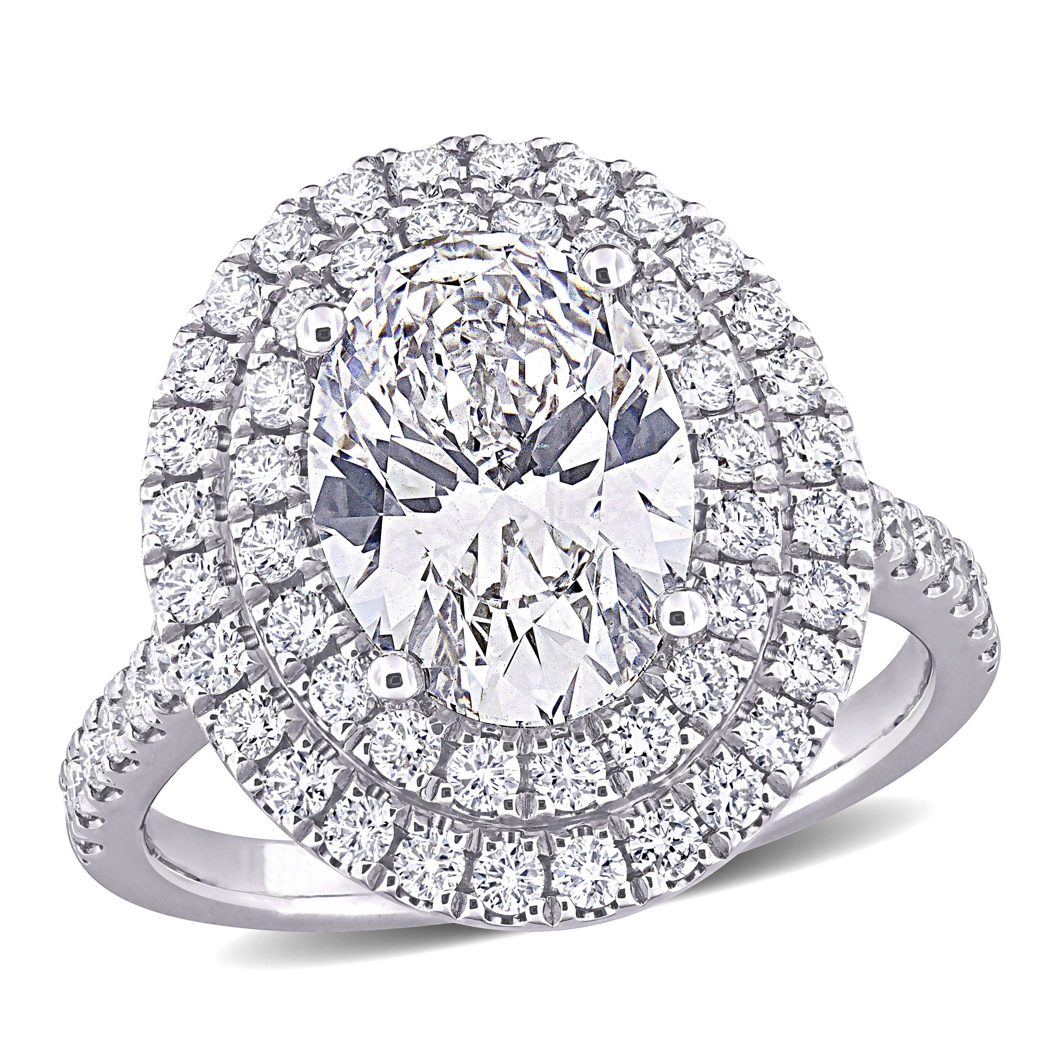 3 7/8ct TW Lab-Grown Diamond Oval Double Halo Engagement Ring in 14k White Gold