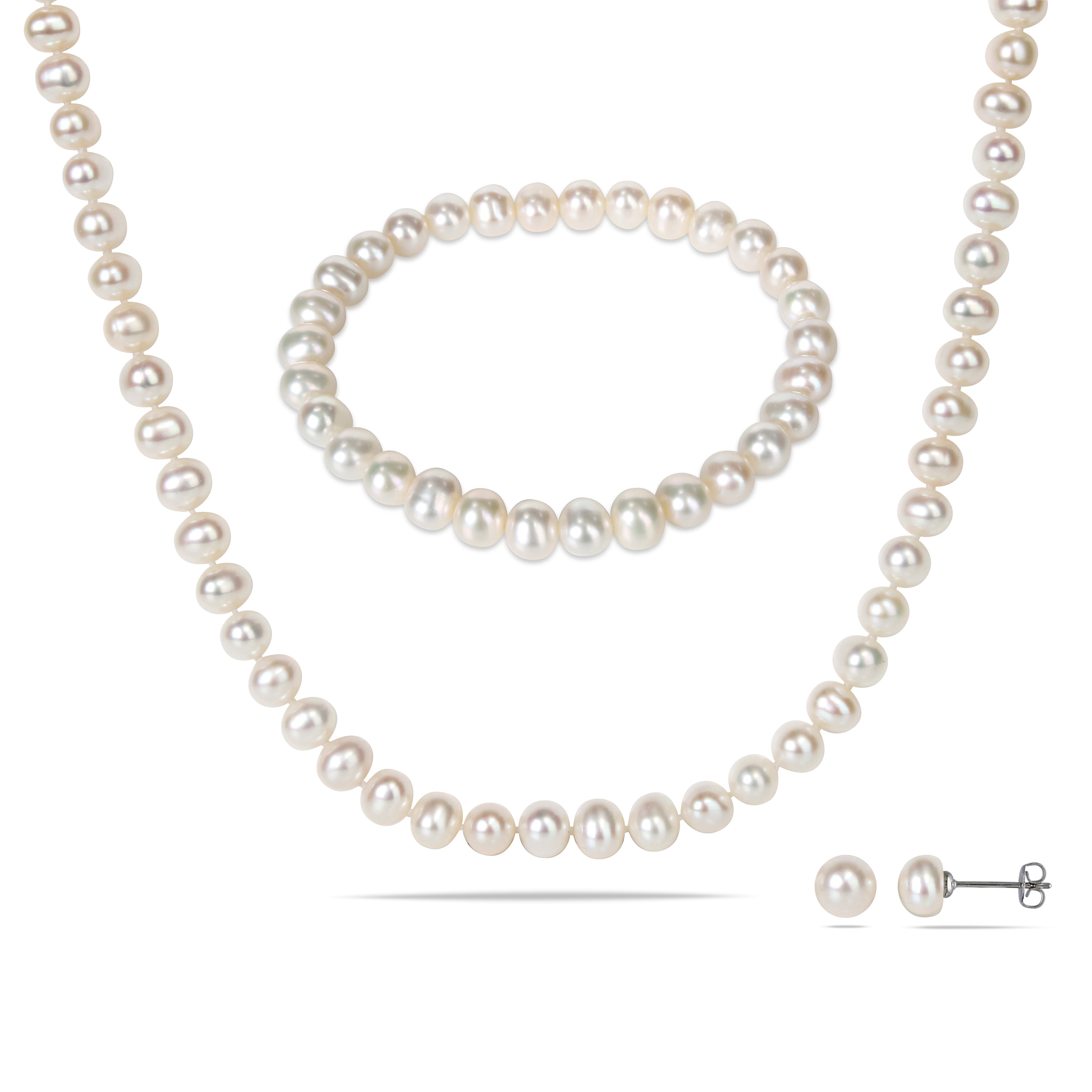 3-Piece Set Cultured Pearl Bracelet, Necklace and Earrings