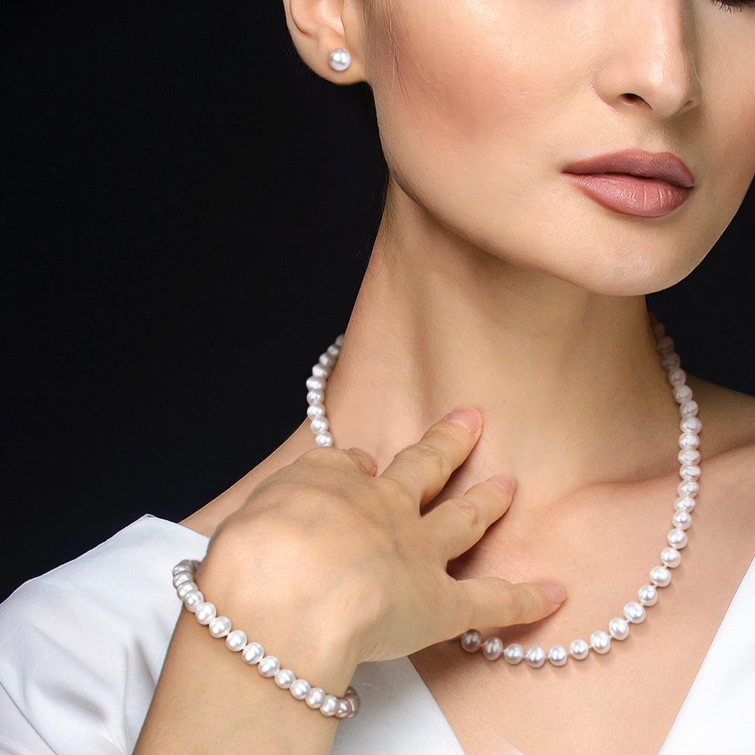 3-Piece Set Cultured Pearl Bracelet, Necklace and Earrings