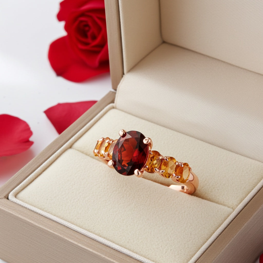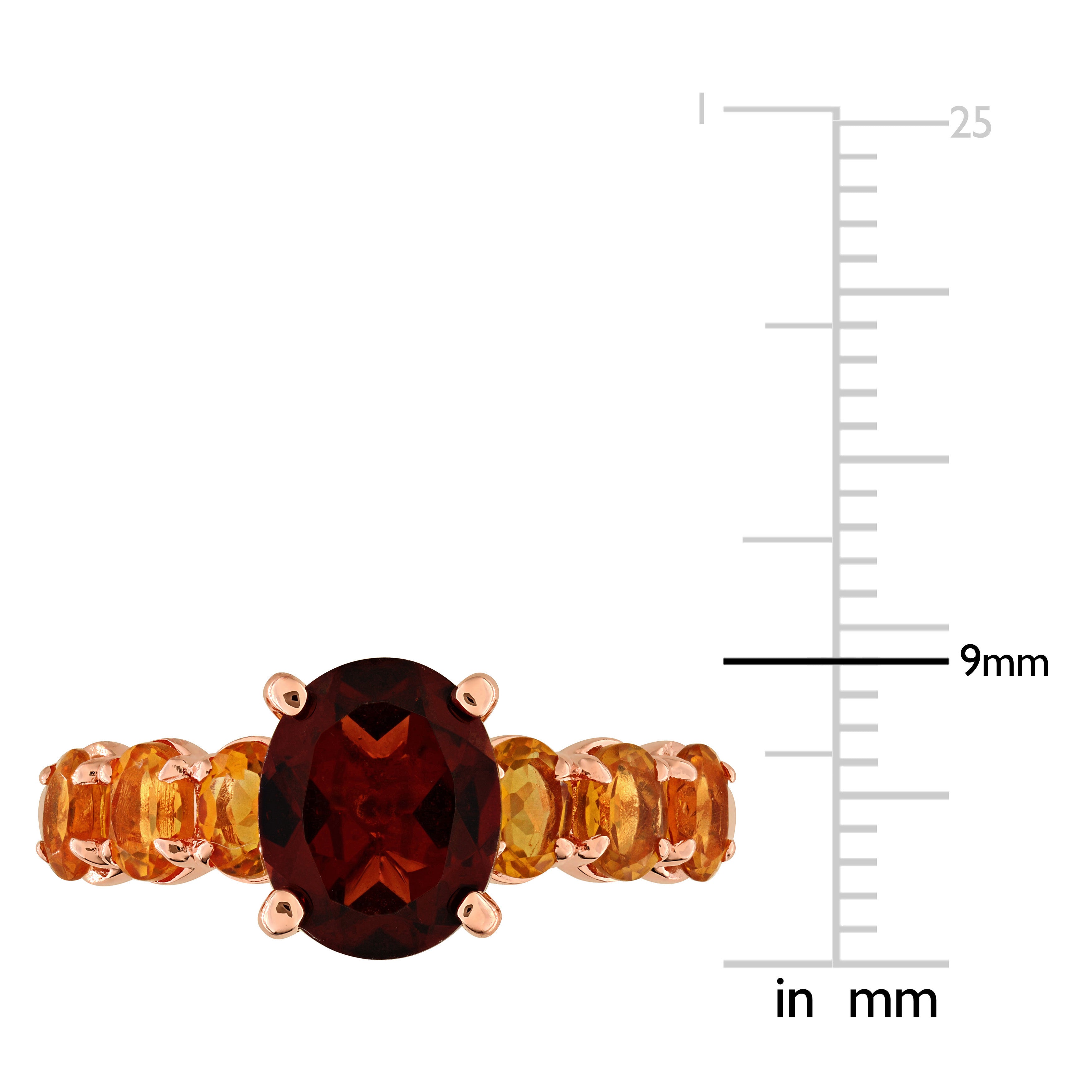 3ct TGW Garnet & Citrine Oval Ring in Rose Plated Sterling Silver