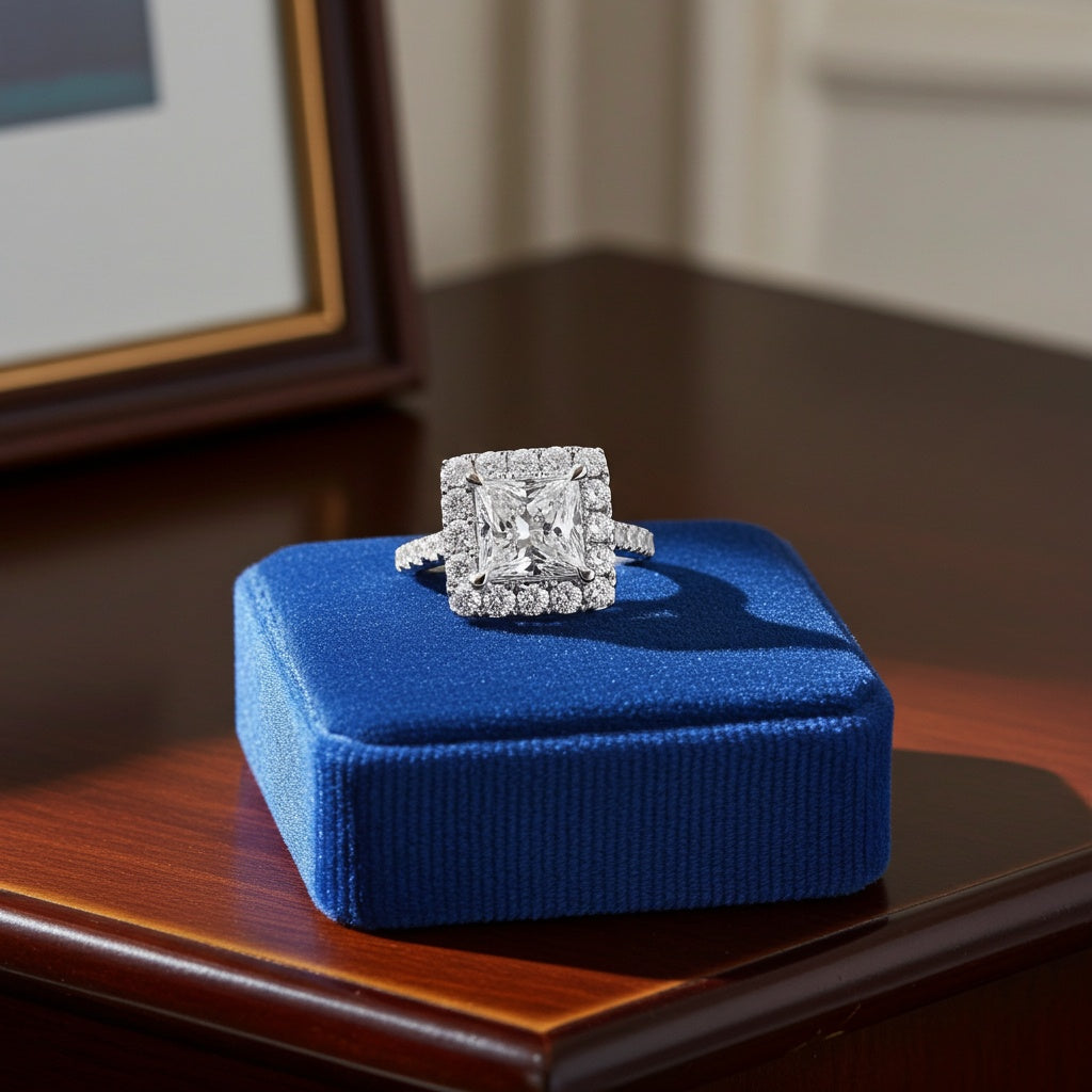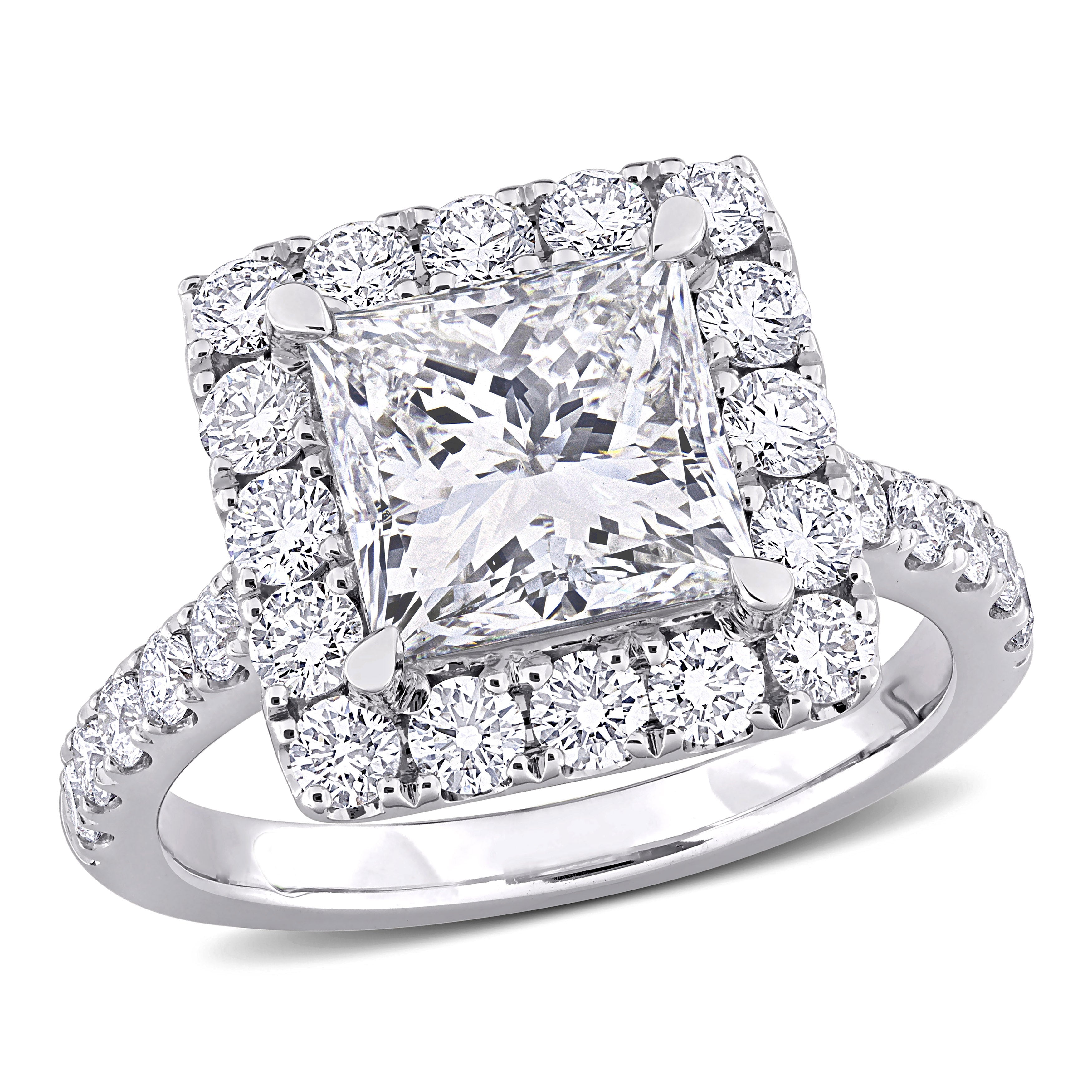 4 1/3 ct. t.w. Lab Grown Diamond Princess Halo Engagement Ring in 14k White Gold