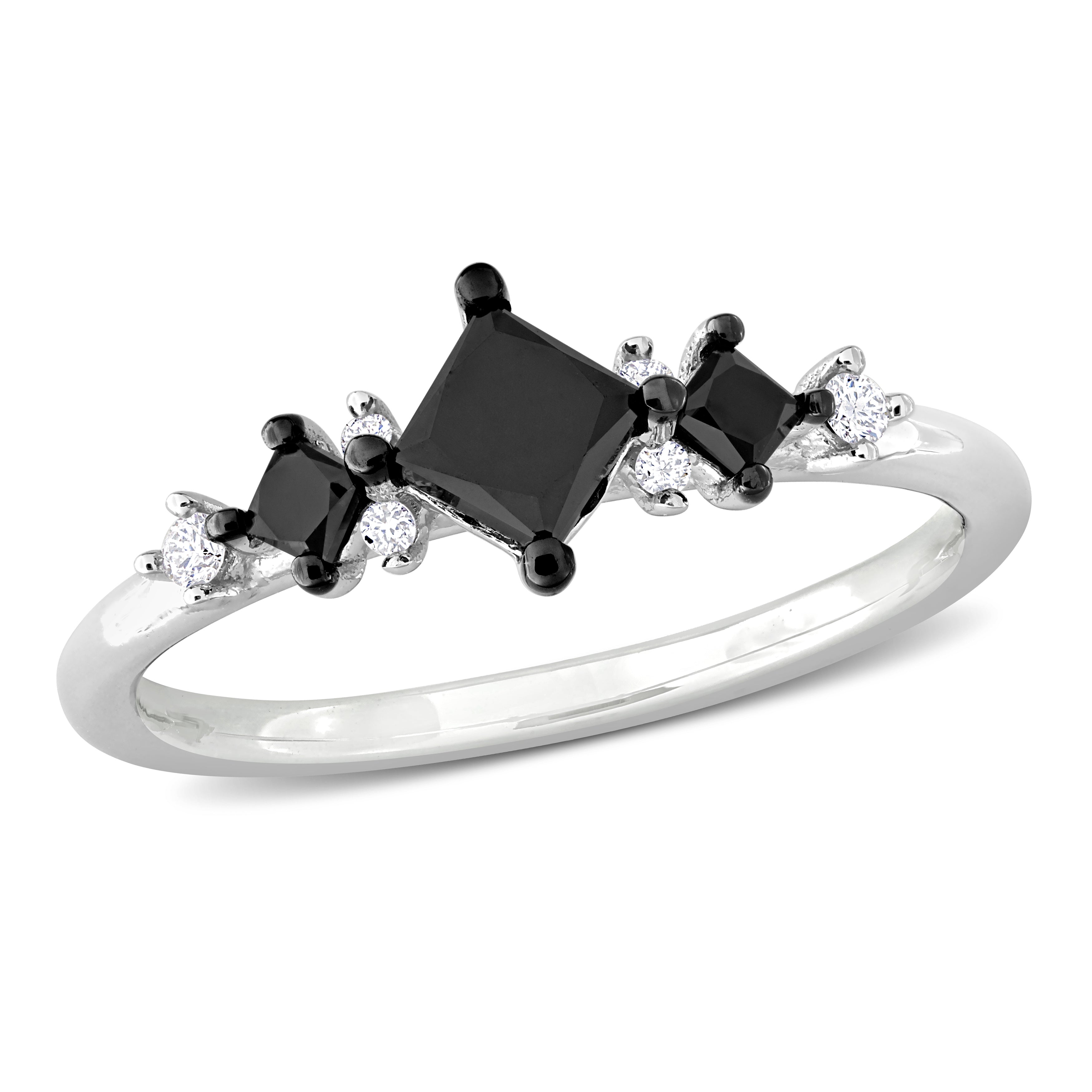 4/5ct. T.W. Black & White Diamond Princess Three-Stone Ring in 14k White Gold