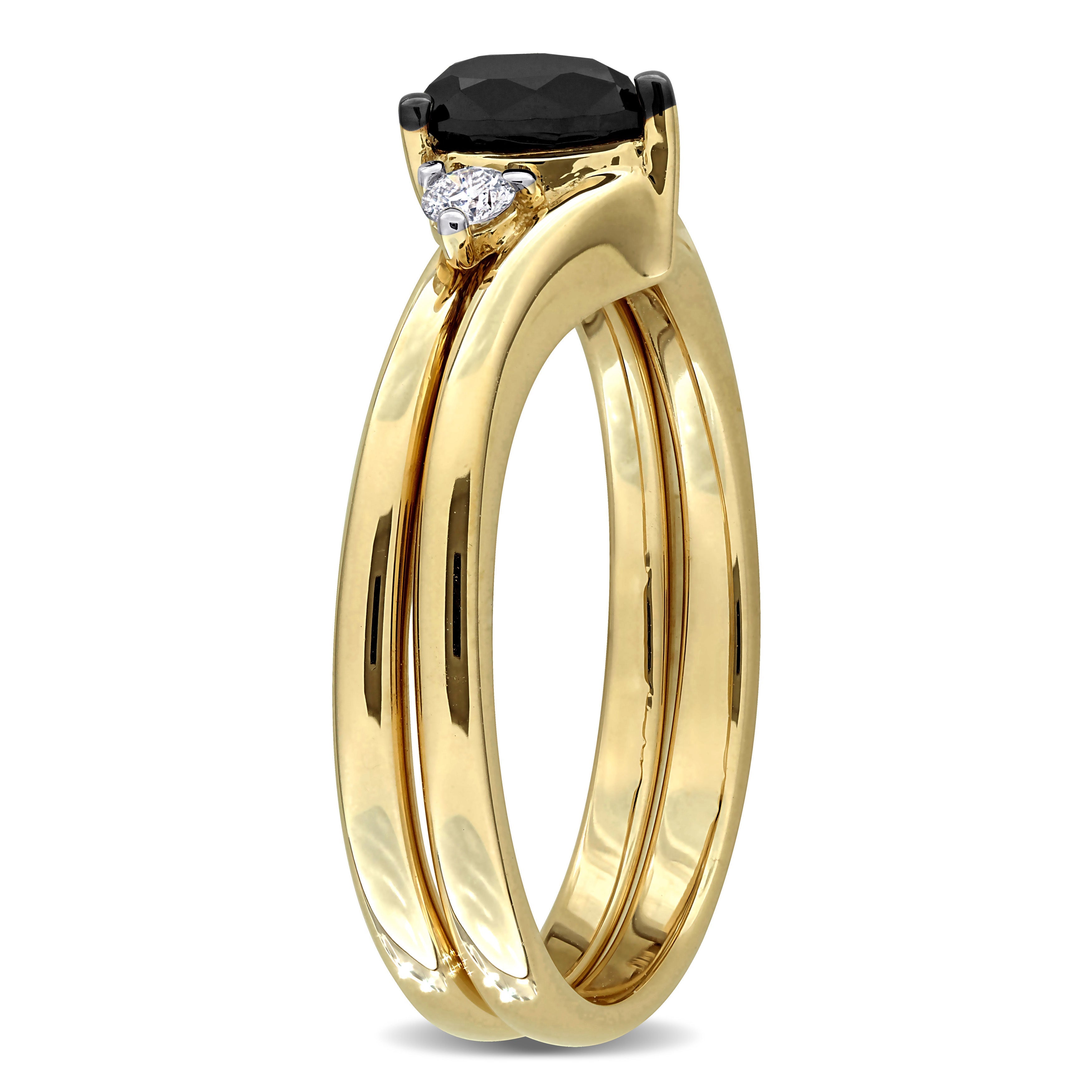 5/8ct. T.W. Black & White Diamond Chevron Bridal Ring Set in 10k Yellow Gold
