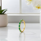 Enhance your elegance with our exquisite Anniversary Band in 10k Gold. This stunning ring features a row of five captivating baguette-cut gemstones, beautifully set in a lustrous 10k gold band. Whether it's to celebrate a special milestone or add a touch of vibrant color to your jewelry collection, this anniversary band is a perfect choice with its timeless beauty.