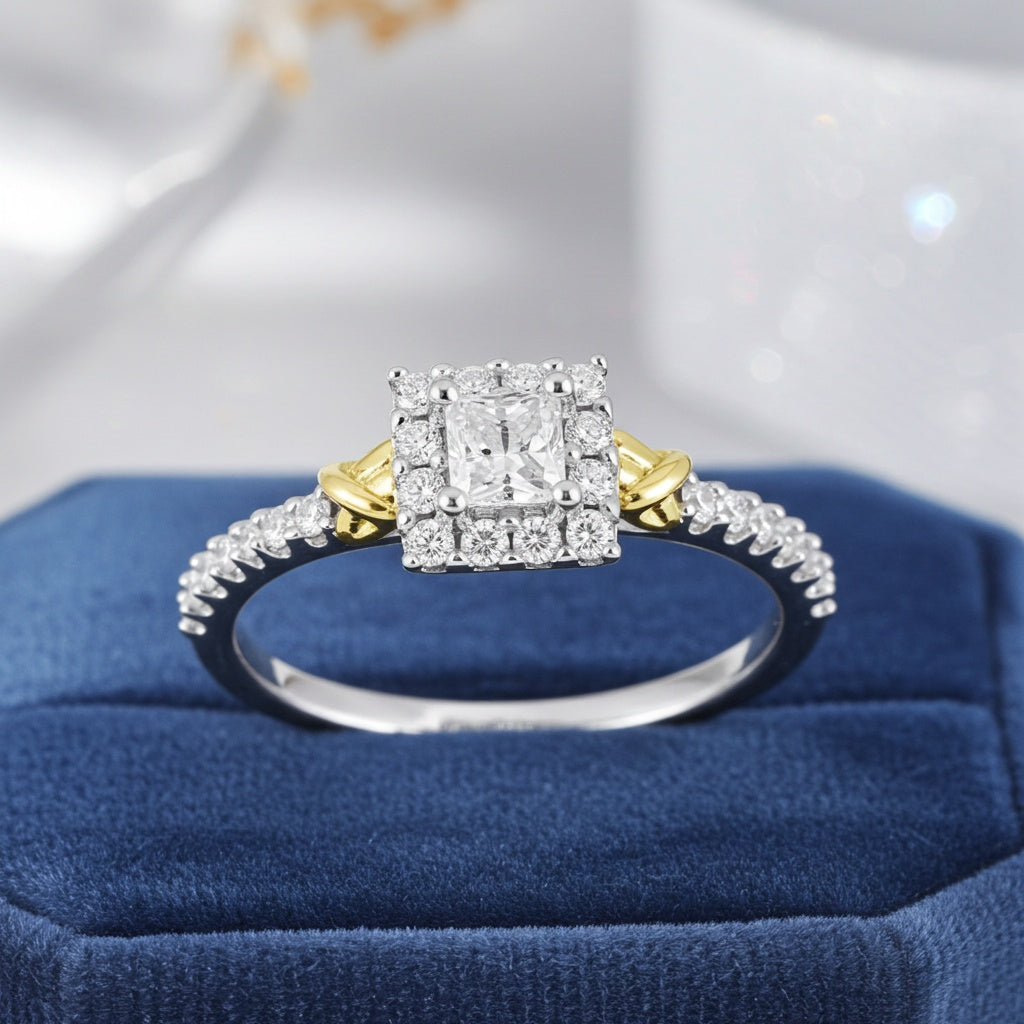 5/8ct TW Diamond Princess Halo Ring in 14k Two-Tone Gold