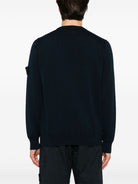 Elevate your everyday wardrobe with this classic crew neck sweater from Stone Island. Crafted from 100% premium cotton, this navy blue pullover features a ribbed neckline, cuffs, and bottom band for a refined finish.