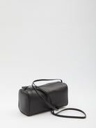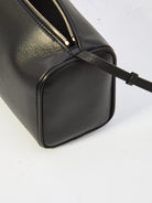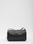 Introducing The Row's 90's Crossbody Bag, a timeless accessory crafted from soft black smooth nappa leather. This sophisticated piece features slightly rounded edges with elegant leather piping, an adjustable thin shoulder strap for versatile wear, and a secure zip closure.