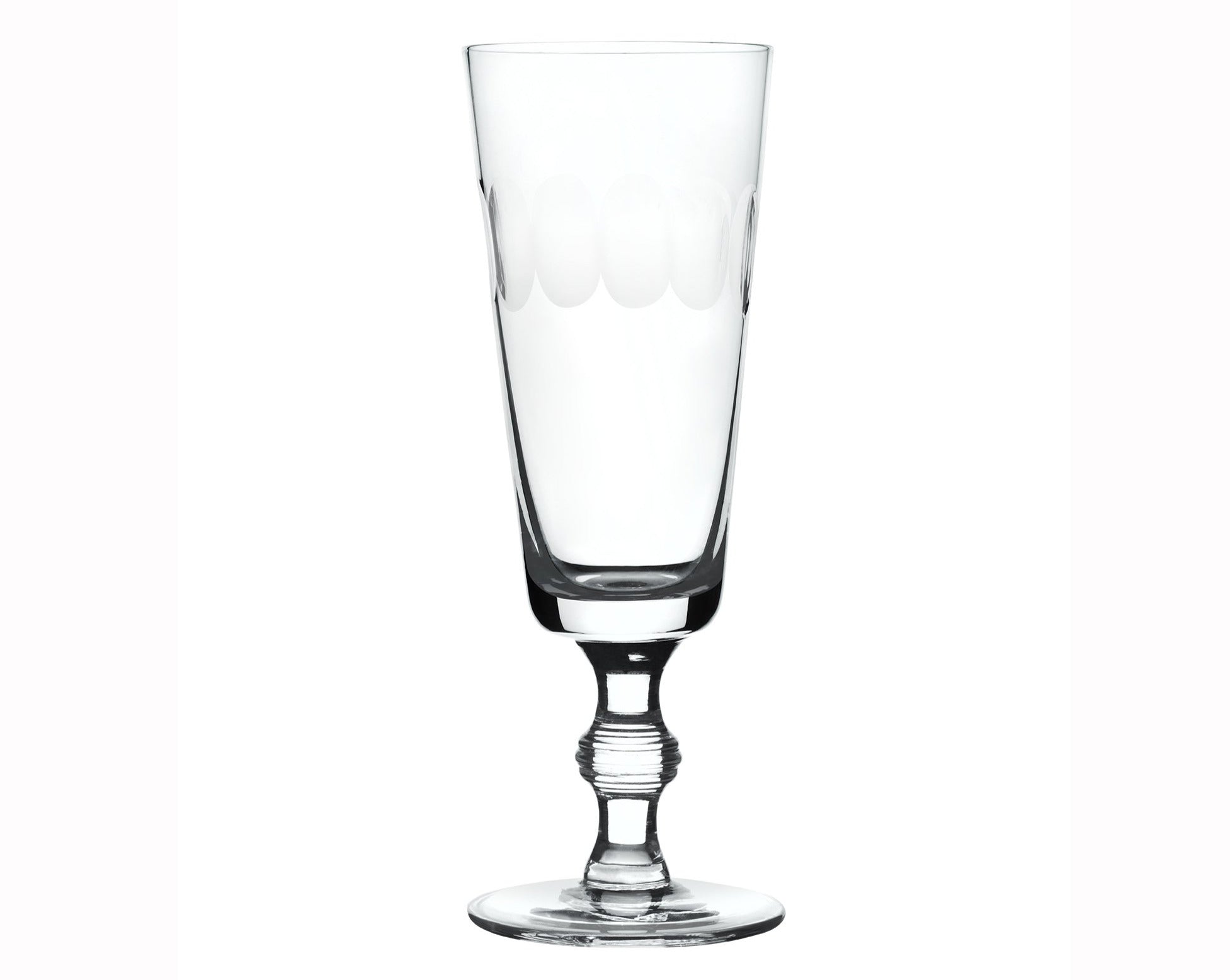 A Set of Four Crystal Champagne Flutes with Lens Design