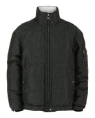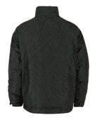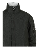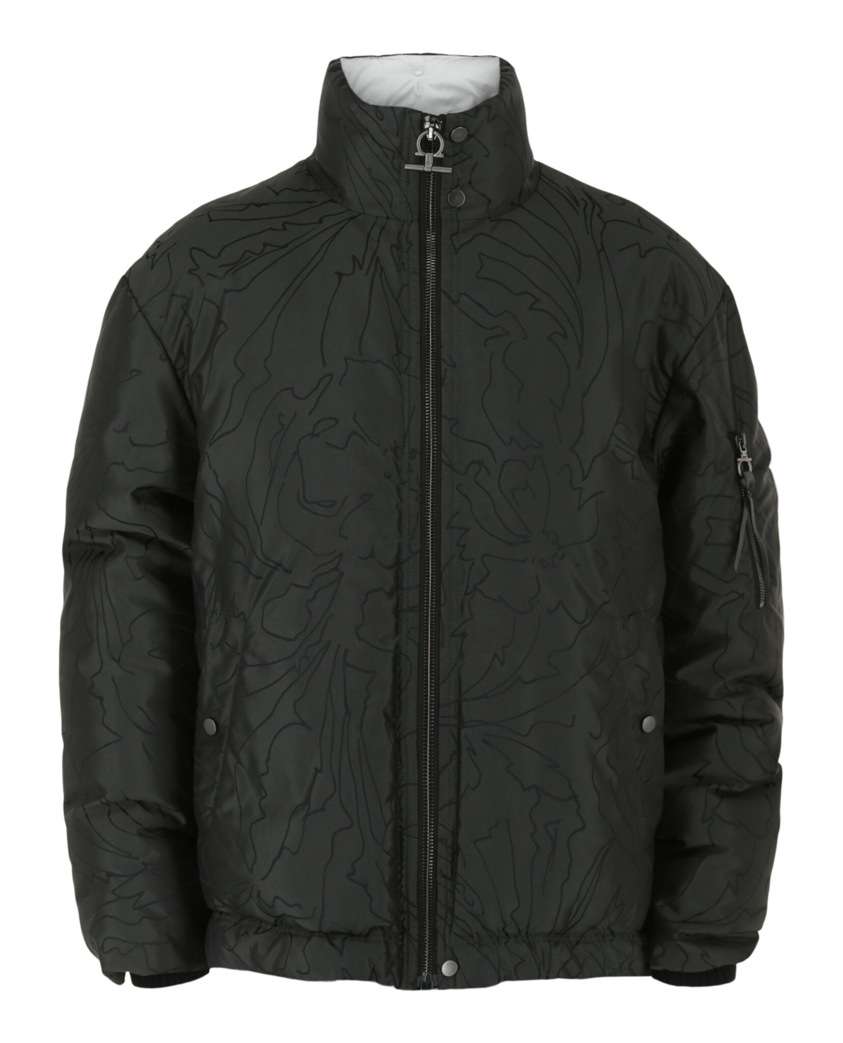 • Allover abstract print; Gunmetal hardware; Gancini zipper pulls; Two front slash pockets; One zip pocket at the sleeve
