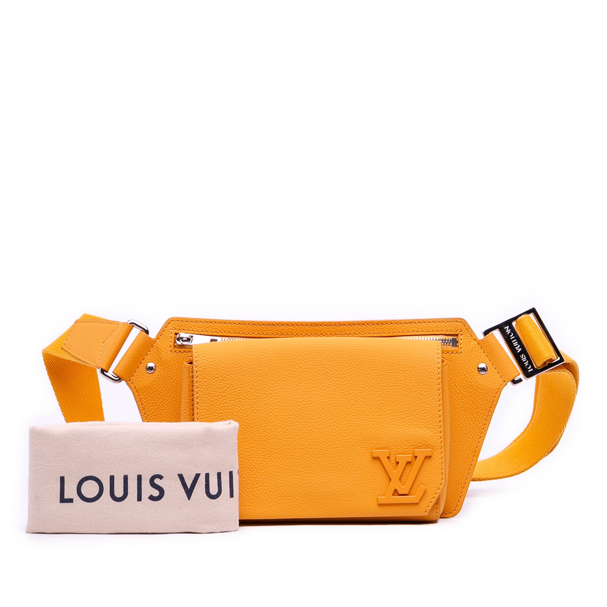 The Takeoff Sling features a leather body, a flat and adjustable waist strap, an exterior front flap pocket, and a top zip closure.