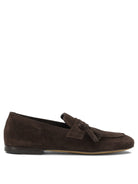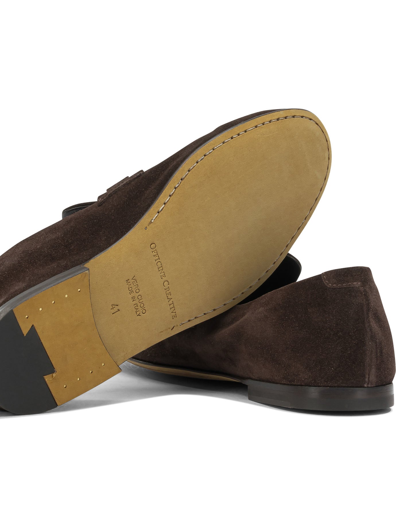 OFFICINE CREATIVE'S "AIRTO 017" LOAFERS FEATURE A HANDCRAFTED CONSTRUCTION WITH A VELVETY SOFT-TEXTURED SUEDE UPPER. THE SILHOUETTE IS TAPERED AND CLEAN, DEFINED BY A SLIGHTLY ROUNDED TOE AND A TEMPLATE WITH TONE-ON-TONE TASSELS. SUBTLE STITCHING AND MINIMAL STRUCTURE HIGHLIGHT THE TEXTURAL RENDERING, WHILE THE LOW LEATHER SOLE INCORPORATES A SLIP-ON INSERT FOR FUNCTIONAL STABILITY.