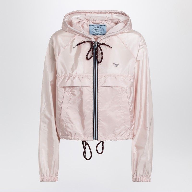 Crafted from Prada's innovative Re-Nylon—a sustainable regenerated nylon fabric—this jacket combines eco-conscious design with impeccable Italian craftsmanship. The double zip front closure, elasticated cuffs, and contrasting drawstring details at the hood and hem create a sporty-chic silhouette that's both functional and fashion-forward.