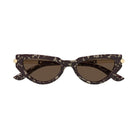 Elevate your eyewear collection with the Alexander McQueen AM0520S 002 sunglasses, a stunning example of luxury craftsmanship and bold design. These cat-eye sunglasses feature a sophisticated Havana tortoiseshell frame paired with rich brown lenses, creating a timeless yet contemporary aesthetic.