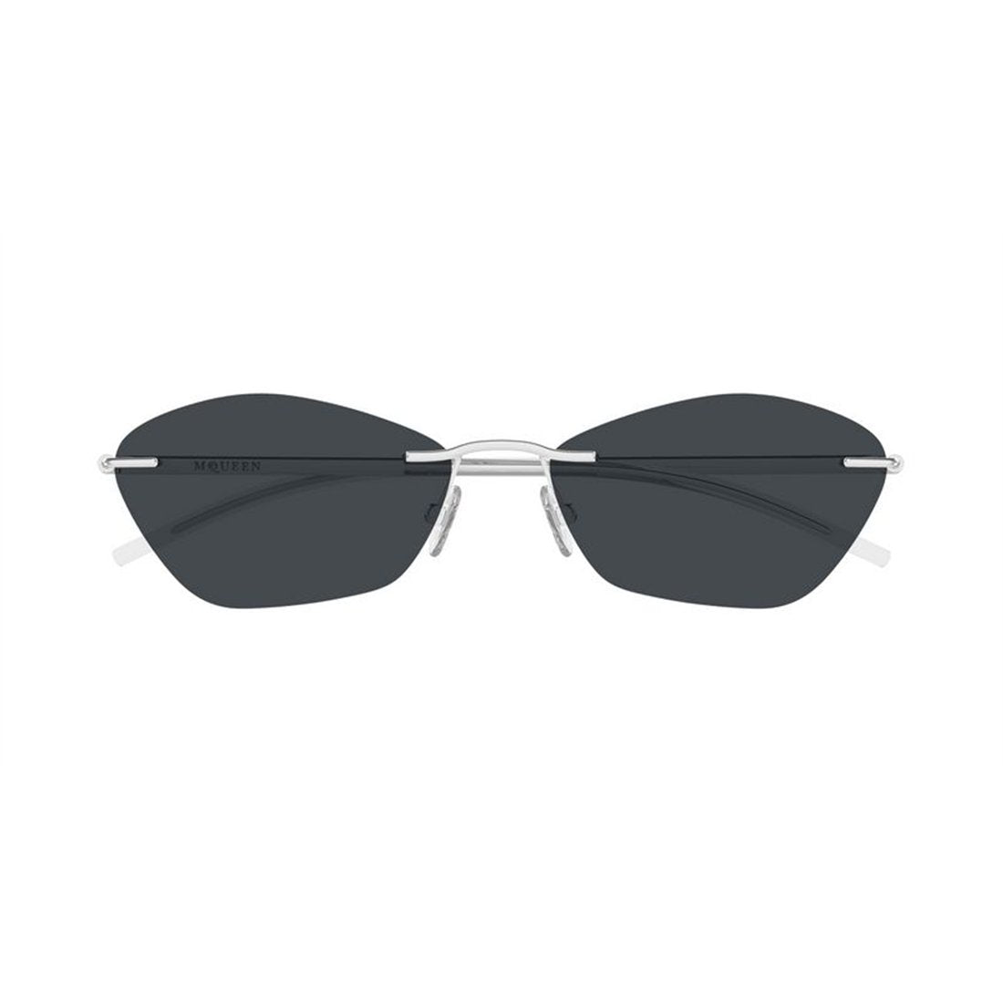 Elevate your eyewear collection with the Alexander McQueen AM0525S 001 sunglasses, a stunning fusion of modern minimalism and luxury craftsmanship. These sophisticated cat-eye sunglasses feature sleek silver metal frames paired with grey lenses, creating an effortlessly chic aesthetic that complements any ensemble.