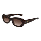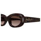 Elevate your eyewear collection with the Alexander McQueen AM0527S 002 sunglasses, featuring a sophisticated Havana tortoiseshell frame paired with rich brown gradient lenses. These retro-inspired rounded frames offer a timeless silhouette that effortlessly complements any face shape while making a bold fashion statement.