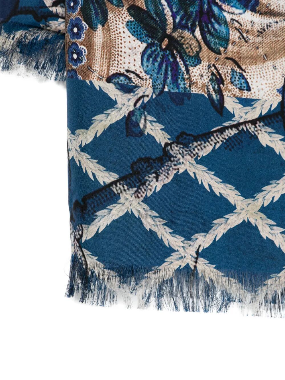 Elevate your accessory collection with the stunning ALOEUW scarf by Pierre Louis Mascia. This luxurious piece is crafted from 100% silk and features an exquisite blend of floral and geometric patterns in rich blue, warm beige, and sophisticated tan tones. Measuring a generous 135x195 cm with elegant 4cm fringe detailing, this scarf offers versatile styling options—drape it over your shoulders, wrap it around your neck, or use it as a statement shawl. The intricate mixed-pattern design showcases Pierre Louis Mascia's signature artistic approach to textile design, making it a true conversation piece. Perfect for adding a touch of refined elegance to both casual and dressy ensembles, this silk scarf transitions seamlessly from day to evening wear. Whether you're elevating a simple outfit or complementing a sophisticated look, this luxurious accessory is an essential addition to any discerning wardrobe.