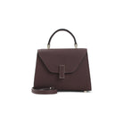 VALEXTRA AMARANTO MINE ISIDE CROSSBODY MICRO BAG. AMARANTO MINE LEATHER, GOLDEN-TONE CLASP CLOSURE WITH A LEATHER INSERT. TONAL DETACHABLE AND ADJUSTABLE STRAP, SIGNATURE BLACK LACQUERED COSTA EDGES PAINTED BY HAND. HANDLE ON TOP, GOLDEN-TONE HARDWARE. FULLY LINED.
