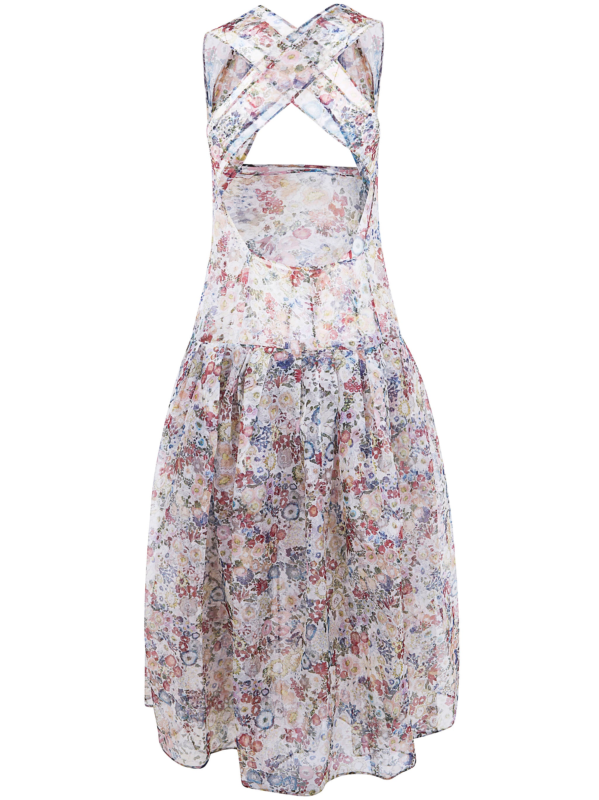 The dress showcases a distinctive crossed halter neckline with an alluring cutout detail at the bodice, creating a sophisticated and feminine silhouette. The flowing midi-length skirt with tiered detailing adds movement and grace to every step.