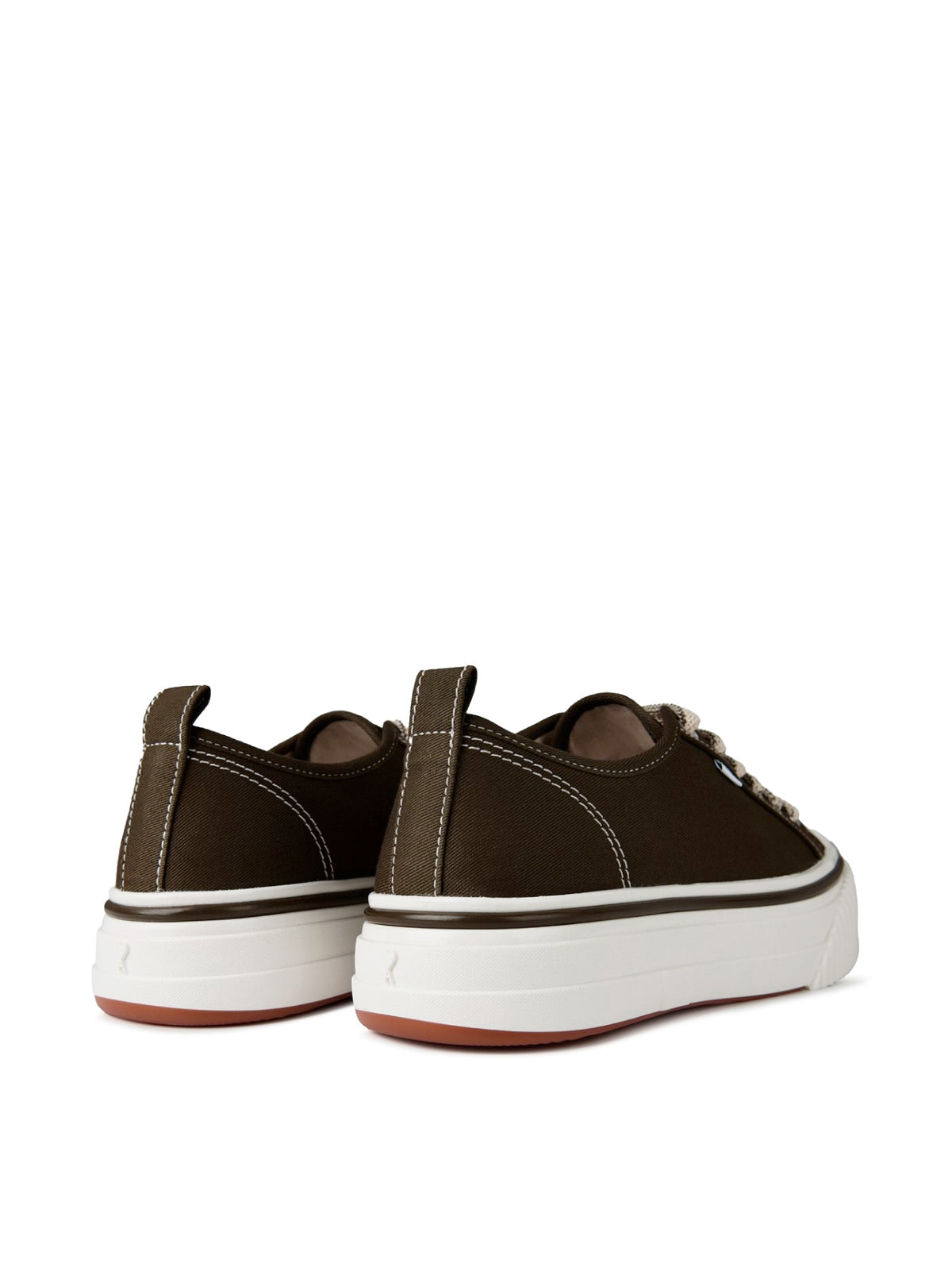 Crafted from premium textile materials and finished with AMI's signature logo detailing, these low-top sneakers showcase the brand's commitment to refined casual style. The rubber sole provides excellent traction and durability, while the dark olive colorway offers versatile styling options that pair effortlessly with everything from denim to tailored trousers.