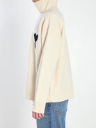 SWEATER IN IVORY VIRGIN WOOL. FEATURES A RIBBED TURTLENECK, LONG SLEEVES, RIBBED HEM AND CUFFS, AND A LARGE BLACK AMI DE COEUR EMBROIDERED LOGO ON THE LEFT SIDE. SLIGHTLY OVERSIZED FIT.
