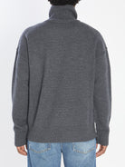 SWEATER IN DARK GREY VIRGIN WOOL. FEATURES A RIBBED TURTLENECK, LONG SLEEVES, RIBBED HEM AND CUFFS, AND A LARGE BLACK AMI DE COEUR EMBROIDERED LOGO ON THE LEFT SIDE. SLIGHTLY OVERSIZED FIT.
