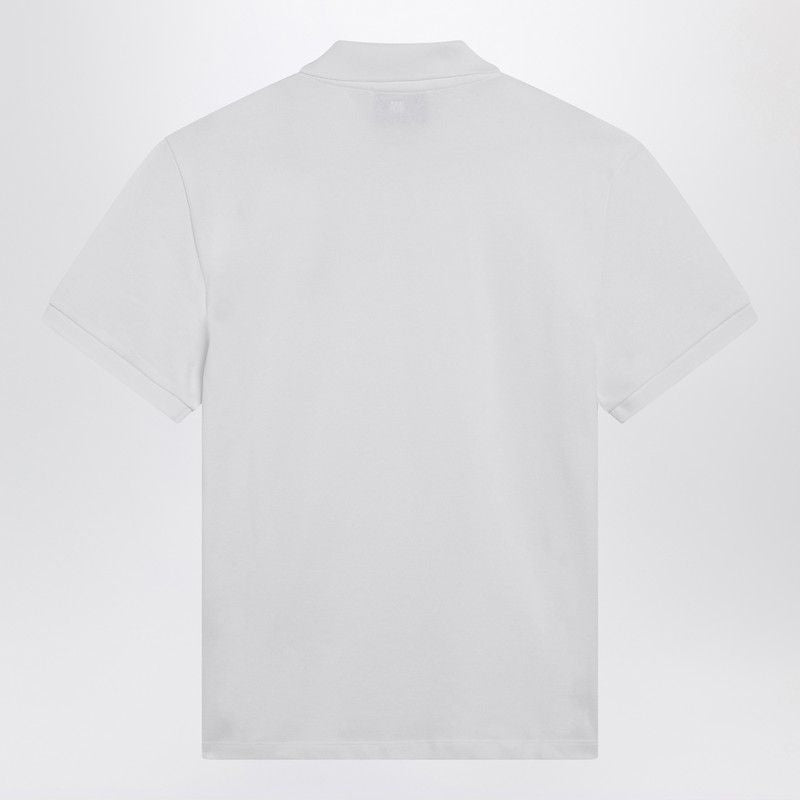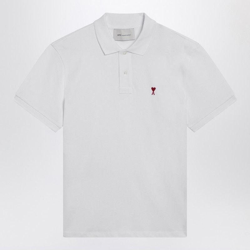WHITE ORGANIC COTTON POLO SHIRT, FEATURING SHORT SLEEVES, AMI DE COEUR EMBROIDERY ON THE CHEST, FRONT BUTTONS AND SIDE SLITS.