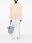 PINK BUTTON FASTENING HEART MOTIF V-NECK LONG SLEEVES RIBBED HEM