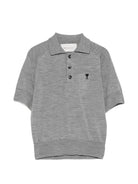 Elevate your casual wardrobe with this sophisticated wool polo shirt from AMI Paris. Crafted in a versatile grey tone, this piece features the brand's signature Ami de Coeur logo embroidery, adding a subtle touch of Parisian elegance.