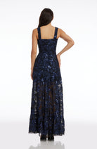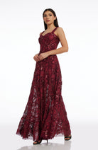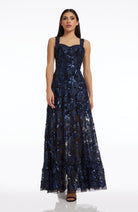 The sophisticated Anabel features a sweetheart neckline atop a fit and flare gown. A sequin embroidery adds flare to this stunning gown.