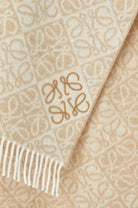 Elevate your accessory collection with this exquisite Anagram Scarf from LOEWE. Crafted from a luxurious blend of wool and cashmere, this bicolored scarf features beautiful shades of beige with an all-over anagram motif that showcases the brand's iconic design aesthetic.
