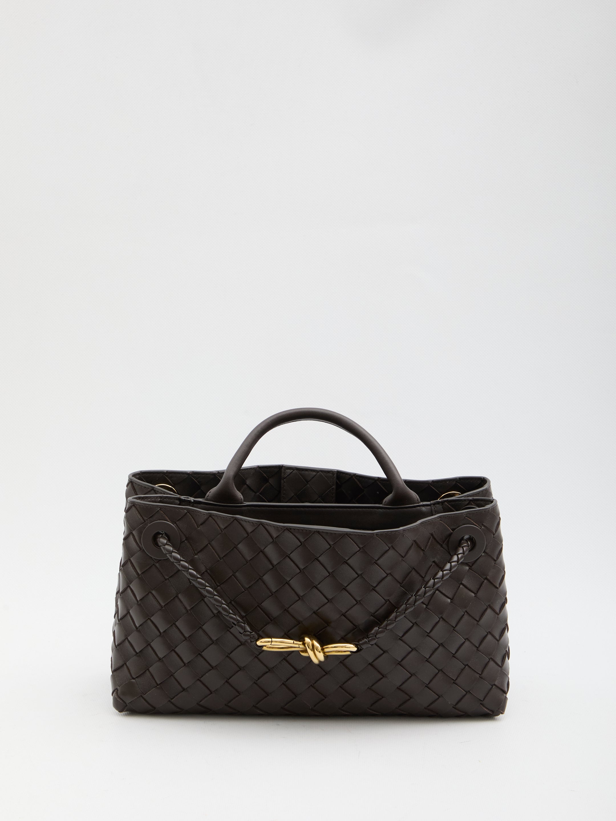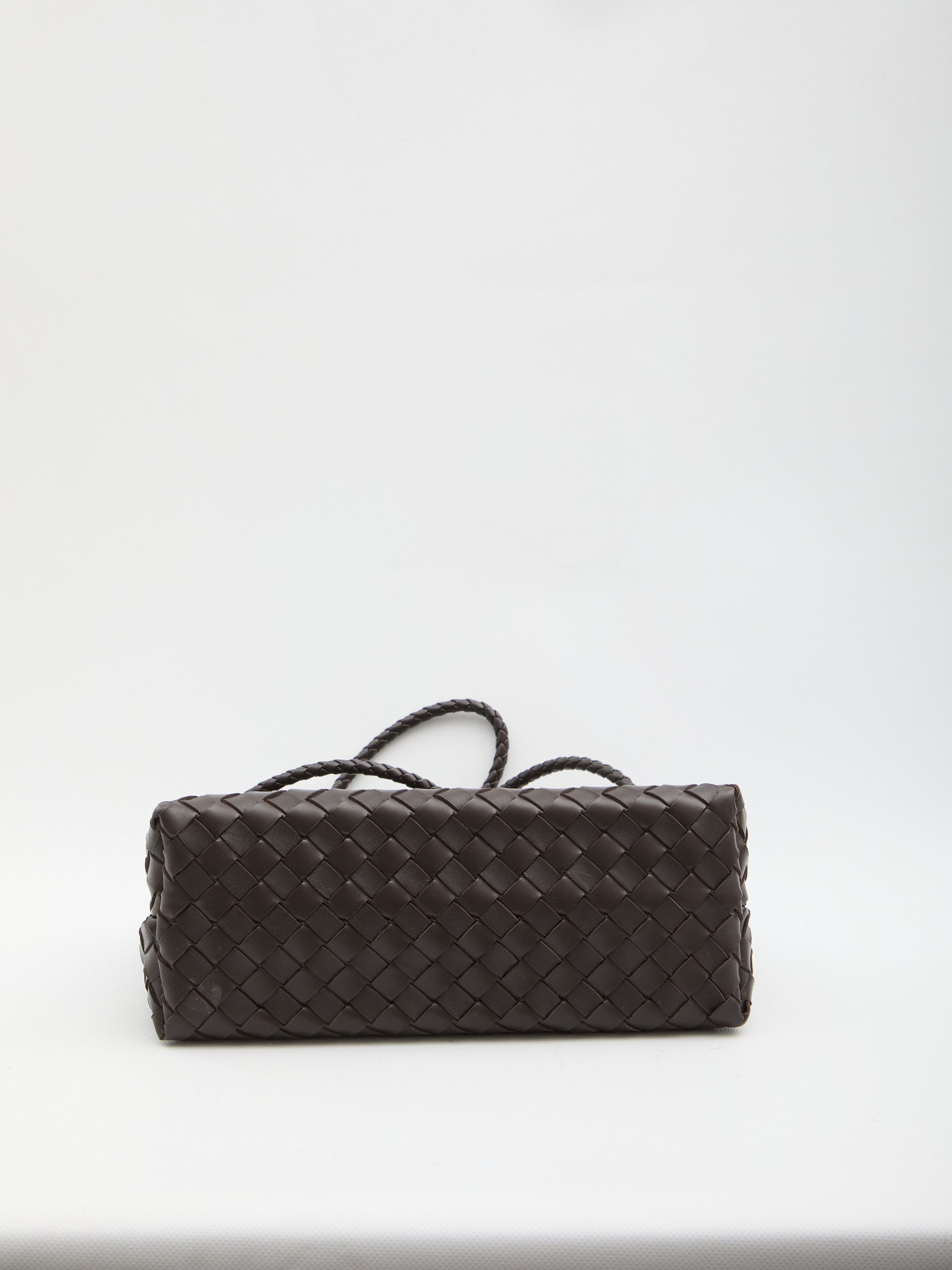 EAST WEST BAG IN SOFT FONDANT BROWN LEATHER WITH INTRECCIATO PATTERN. IT FEATURES A TOP HANDLE, A SLIDING SHOULDER STRAP WITH THE ICONIC KNOT DETAIL IN GOLD-TONE METAL, A MAGNETIC CLOSURE, TWO INTERNAL COMPARTMENTS, AN INTERNAL ZIP POCKET, THREE INTERNAL FLAT POCKETS, AND LAMBSKIN LEATHER LINING. DUSTBAG INCLUDED. ANY IMPERFECTIONS IN THE LEATHER SHOULD NOT BE CONSIDERED MANUFACTURING DEFECTS, BUT RATHER A CHARACTERISTIC OF THE MATERIAL.