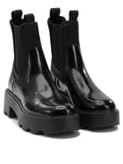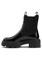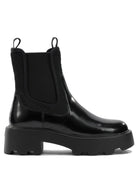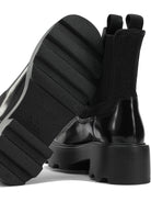Elevate your footwear collection with these sophisticated ankle boots from Tory Burch. Crafted in luxurious black leather with classic Chelsea-style elastic side panels, these boots feature a modern chunky lug sole that combines comfort with contemporary edge.