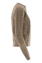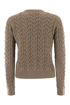 BASIC PULLOVER IN PURE CASHMERE YARN, WITH A SMALL VOLUME AND ALL-OVER CABLE KNIT PATTERN. - SEMI-FITTED SILHOUETTE - ROUND NECK - LONG SET-IN SLEEVES - STRAIGHT HEM - RIBBED EDGES DESIGNER ID: 2521366032600 002