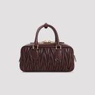 Introducing the Miu Miu Arcadie Regular Matelassé Nappa Leather Bag, a stunning example of Italian luxury craftsmanship. This exquisite satchel features the signature matelassé quilted texture in supple nappa lambskin leather, creating a sophisticated dimensional effect that catches the eye.