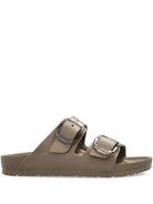 Crafted with Birkenstock's renowned contoured footbed and branded insole, these sandals provide exceptional arch support and all-day comfort. The round open-toe design and neutral taupe hue make them incredibly versatile, effortlessly pairing with everything from casual denim to flowing summer dresses.