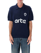 CRAFTED FROM A PREMIUM COTTON BLEND, THIS BLUE KNITTED POLO FEATURES AN EMBROIDERED ARTE LOGO IN ATHLETIC STYLING ACROSS THE BODY AND A MATCHING EMBROIDERED PATCH ON THE CHEST.