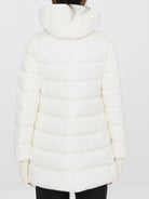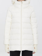 DOWN JACKET IN WHITE QUILTED NYLON. IT FEATURES DRAWSTRING HOOD, FRONT ZIP CLOSURE, TWO SIDE ZIP POCKETS AND RIB-KNIT CUFFS WITH THUMBHOLES. REGULAR FIT.