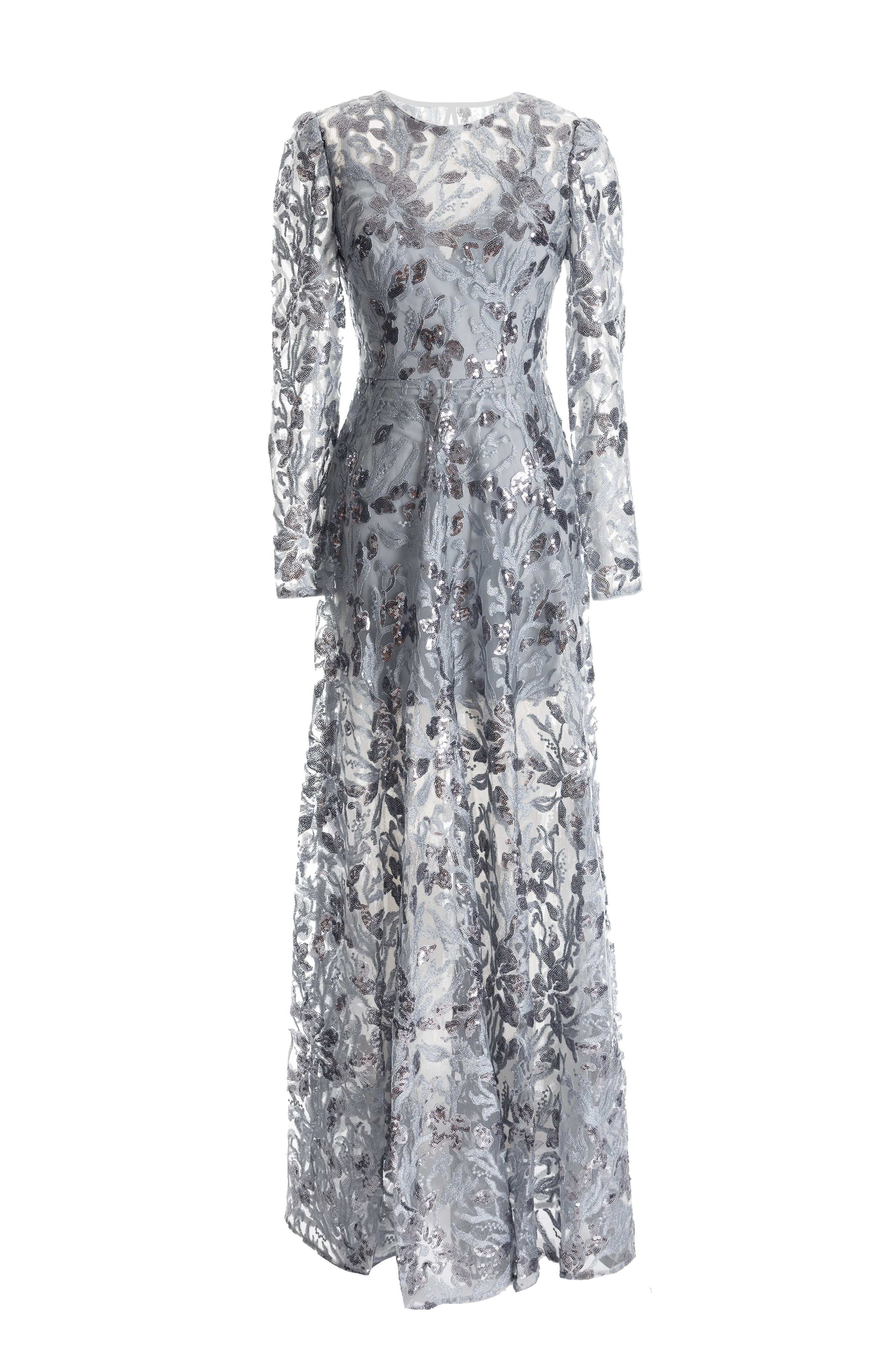 The Ava Dress is a captivating fit-and-flare gown featuring long sleeves and an elegant illusion neckline. Designed to flatter while adding a touch of romance, this gown offers a timeless silhouette with a modern twist. Perfect for formal events, the Ava Dress ensures a graceful and memorable entrance.