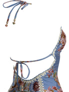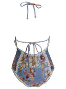 Make a statement poolside with the Zimmermann Awaken Crochet Keyhole Swimsuit, a stunning one-piece that combines romantic femininity with modern design. This exquisite swimsuit features a beautiful floral print in soft periwinkle blue adorned with coral and rust-toned blooms, creating an effortlessly elegant aesthetic.
