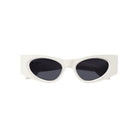 Make a bold statement with these stunning Azzedine Alaïa AA0075S sunglasses featuring a striking white frame and sophisticated grey lenses. The distinctive oval silhouette and chunky frame design embody the luxury brand's signature blend of architectural precision and timeless elegance.