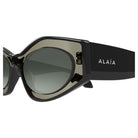 The chunky, rounded silhouette showcases Alaïa's signature architectural approach to accessories, while the wide temples adorned with subtle branding add an unmistakable touch of haute couture elegance. Perfect for elevating your off-duty looks or adding a glamorous finishing touch to vacation ensembles, these sunglasses seamlessly blend fashion-forward style with essential sun protection.