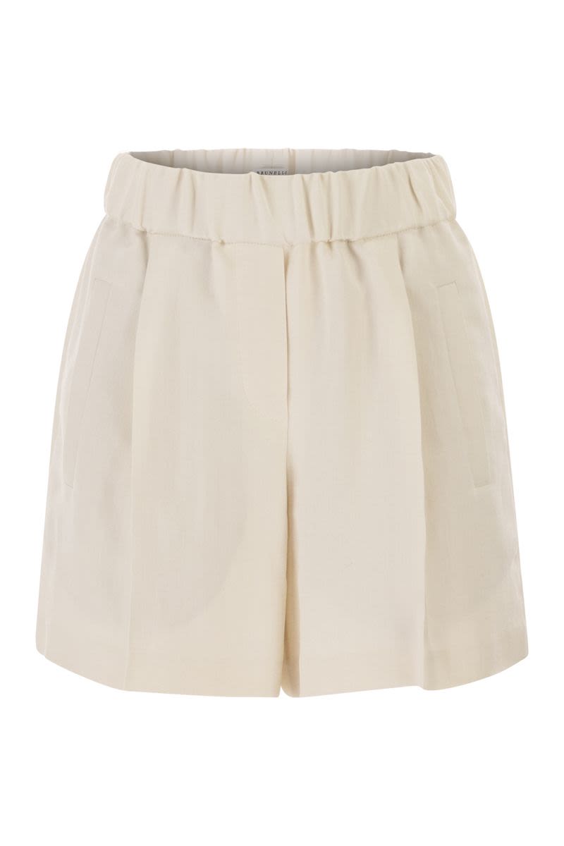 BAGGY SHORTS IN FLUID VISCOSE AND LINEN TWILL