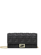 FENDI BAGUETTE CONTINENTAL WALLET ON CHAIN BLACK HAVE YOU EVER OWNED A WALLET THAT LOOKED SO GOOD YOU WANTED TO SHOW IT TO EVERYONE THANKS TO A DETACHABLE GOLD PLATED CHAIN SHOULDER STRAP THIS BLACK LAMBSKIN BAGUETTE CONTINENTAL WALLET FROM FENDI CAN ALSO FUNCTION AS A CLUTCH WEAR IT WITH PRIDE FEATURING GOLD PLATED HARDWARE A MONOGRAM PATTERN AN EMBOSSED FINISH AN OPTIONAL CHAIN STRAP A FOLDOVER TOP WITH SNAP CLOSURE MULTIPLE INTERIOR CARD SLOTS AND AN INTERNAL ZIPPED POCKET LAMB SKIN GOLD PLATED MET