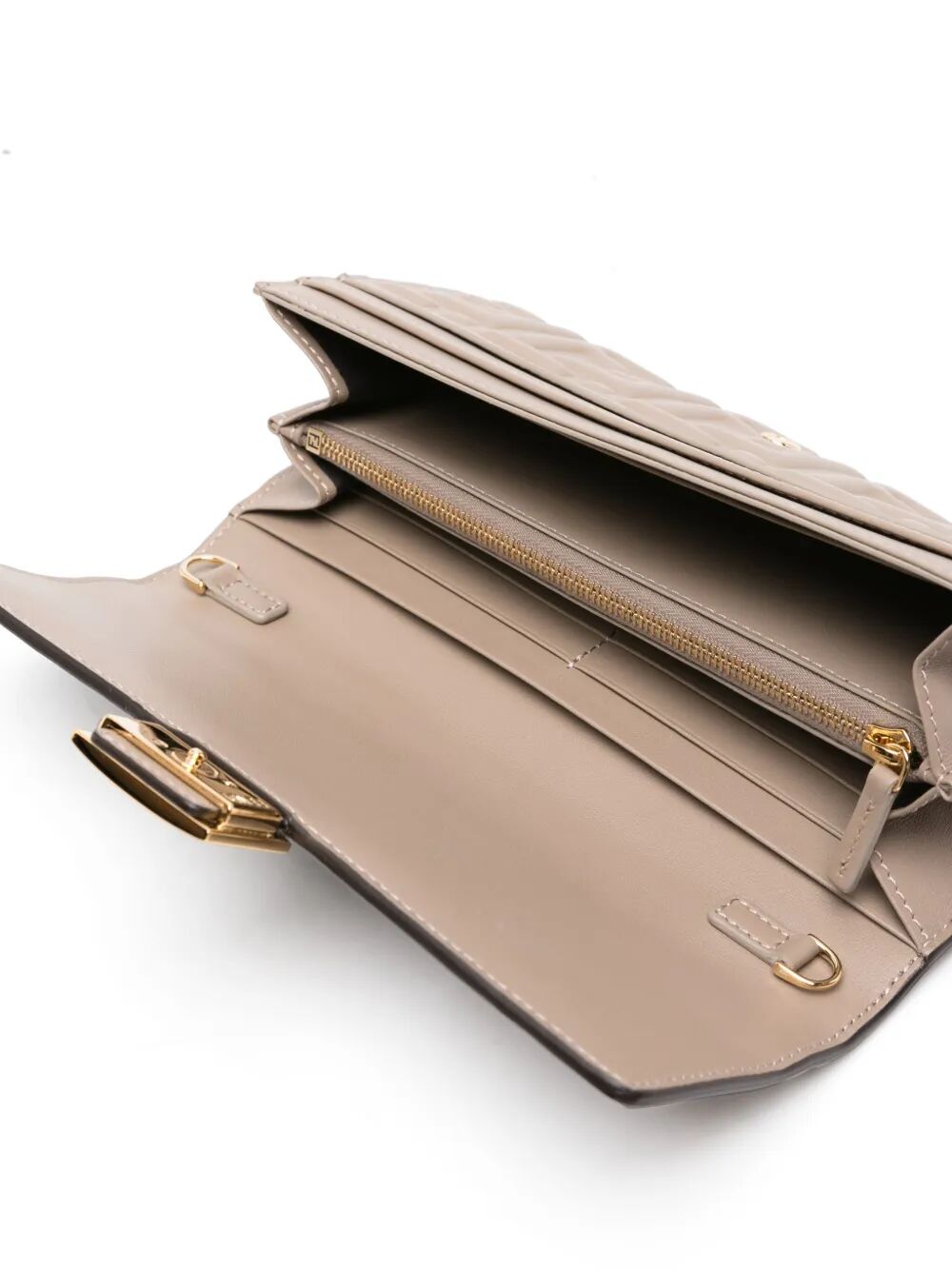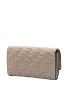 Crafted from supple lambskin leather, this continental wallet features the signature embossed FF motif that pays homage to Fendi's heritage. The elegant chain strap transforms this piece from a practical wallet into a chic crossbody or shoulder bag, perfect for transitioning from day to evening.