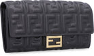 Elevate your accessory game with this luxurious Fendi Baguette Leather Wallet on Chain. Crafted from premium lamb leather with embossed all-over logo detailing, this sophisticated piece features a buttoned flap fastening and gold-tone metal hardware for an elevated finish.
