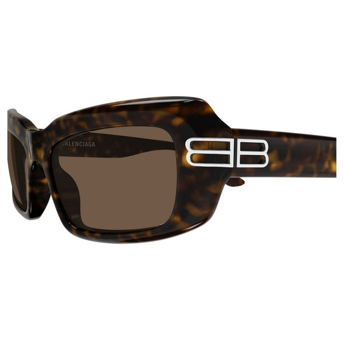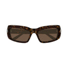 Make a bold statement with the Balenciaga BB0432S 002 sunglasses, featuring a luxurious havana tortoiseshell frame paired with rich brown lenses. These square-shaped sunglasses showcase Balenciaga's signature logo detailing on the temples, adding an unmistakable designer touch to your look.
