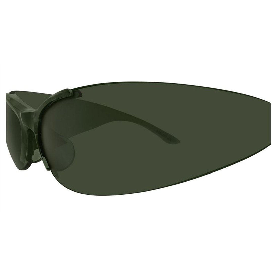 These wraparound shield sunglasses feature a sleek green frame paired with matching green lenses, creating a bold monochromatic look that's both futuristic and fashion-forward.
