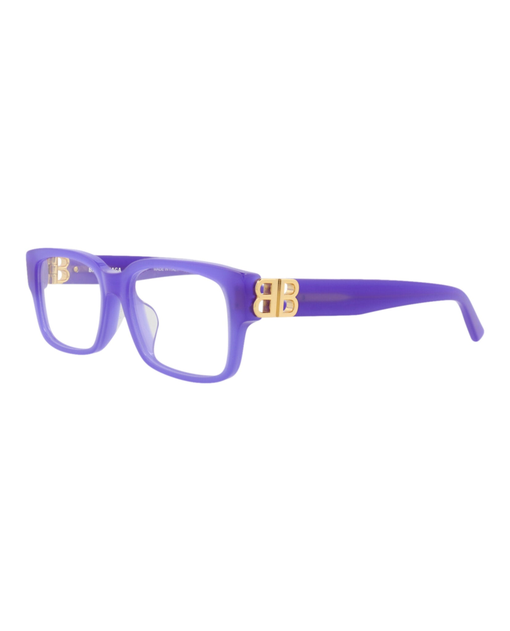 Elevate your everyday style with these striking Balenciaga Square-Frame Acetate Optical Frames. Crafted in Italy from premium acetate in a bold purple hue, these frames feature a modern square silhouette with metal temples and distinctive cutout accents that showcase the brand's avant-garde aesthetic.